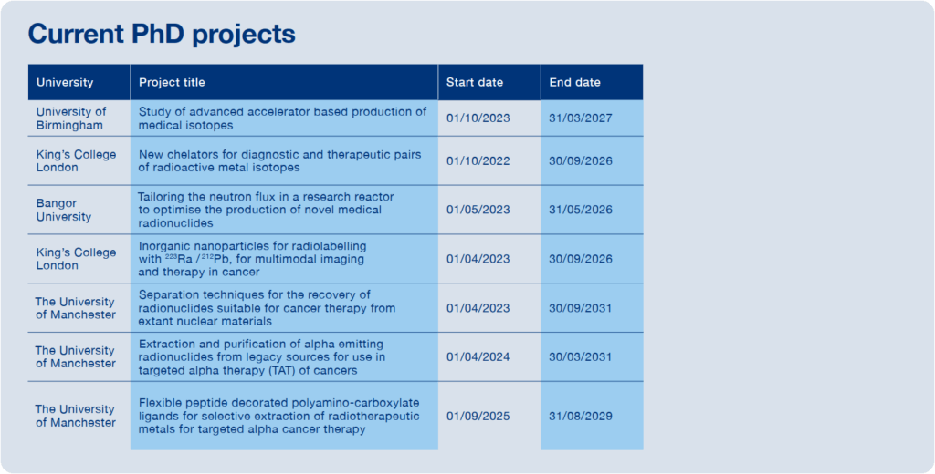 The project is supporting seven PhDs which are looking at more effective ways of identifying useful radionuclides produced from the multiple decay products of uranium, as well as how other by-products of nuclear power plants can be used.